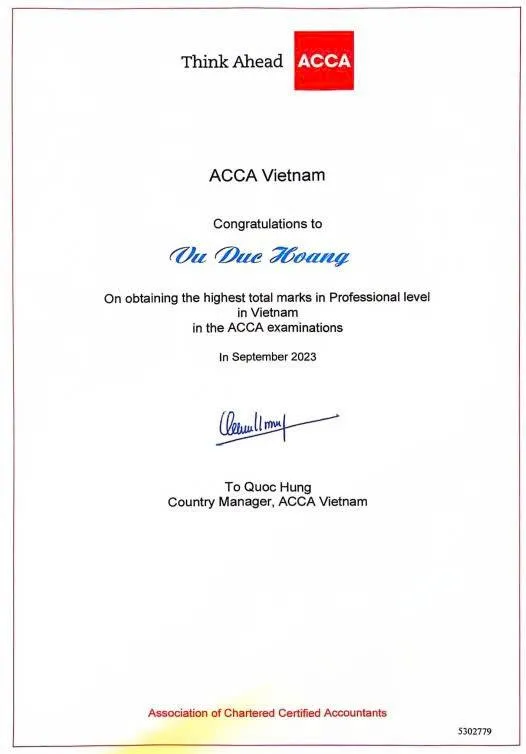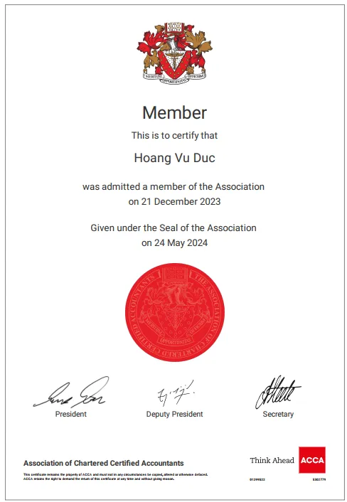 Chứng chỉ Qualified ACCA Member, chứng nhận năng lực chuyên môn quốc tế